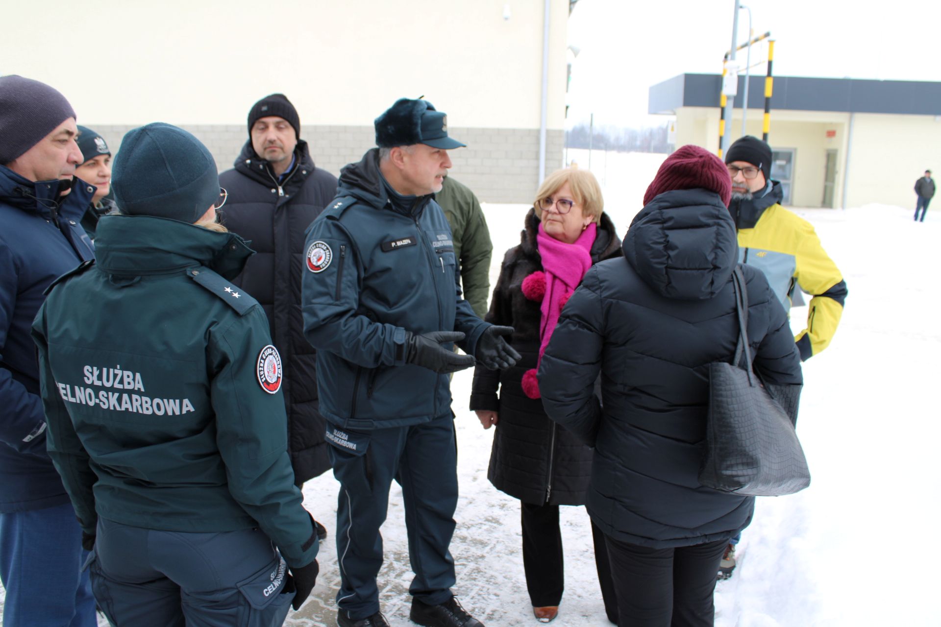 13 stycznia 2026 r. Wojewoda Podkarpacki Teresy Kubas-Hull wraz z kierownictwem Podkarpackiego Urzędu Wojewódzkiego wizytowała drogowe przejście graniczne w Budomierzu. Podczas spotkania roboczego z udziałem przedstawicieli podkarpackiej Krajowej Administracji Skarbowej na czele z kom. Dominiką Milanowską-Ruchel – Zastępcą Dyrektora Izby Administracji Skarbowej w Rzeszowie, omówiono bieżące i planowane inwestycje służące usprawnieniu funkcjonowania odpraw granicznych. W spotkaniu uczestniczyli także podkom. Anna Chmurowicz – Zastępca Naczelnika Podkarpackiego Urzędu Celno-Skarbowego w Przemyślu oraz podkom. Piotr Mazepa – Kierownik Oddziału Celnego w Budomierzu.
