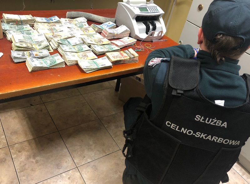Podczas rewizji okazało się, że 28- letni mężczyzna, wbrew obowiązującym przepisom, nie zgłosił przewozu znacznych ilości środków pieniężnych. W kabinie samochodu, w foliowym worku znajdowała się gotówka w różnych walutach o równowartości blisko 430 tysięcy złotych.