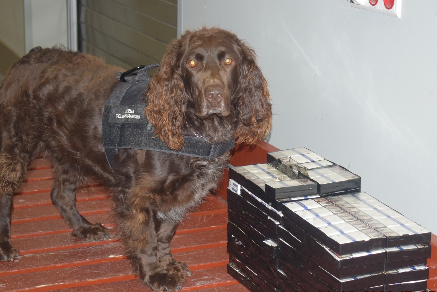 Funkcjonariusze Oddziału Celnego w Budomierzu skierowali do szczegółowej kontroli autokar, który wjeżdżał do Polski z Ukrainy. Podczas rewizji wykryli, że w skrytce za kołem zapasowym znajdują się papierosy bez polskich znaków akcyzy. Miejsce ukrycia towaru wskazał służbowy pies Jagger, wyszkolony do wyszukiwania wyrobów tytoniowych. Kierujący pojazdem ob. Ukrainy został ukarany mandatem karnym w wysokości 11 tys. zł.