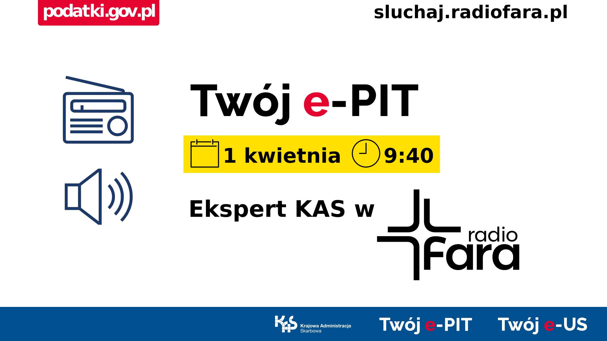 Słuchacze piątkowych audycji w Radiu FARA będą mogli dowiedzieć się jak rozliczyć podatek i jakie są zalety rozliczenia elektronicznego w usłudze Twój e-PIT. Będą mogli posłuchać, jak złożyć zeznanie podatkowe samodzielnie, a jak wspólnie z członkiem rodziny – małżonkiem lub dzieckiem. Ekspert podkarpackiej KAS wyjaśni, jak opodatkowane są dochody małoletnich oraz jakie preferencje przewidziane są dla osób, które nie ukończyły 26 roku życia. Emeryci i renciści, również znajdą w audycjach wiele ciekawych tematów dla siebie, przykładowo jak odliczać wydatki w ramach ulgi rehabilitacyjnej. Pracujący za granicą dowiedzą się jak rozliczyć dochody zagraniczne, jak uniknąć podwójnego opodatkowania oraz jak skorzystać z ulgi abolicyjnej. W trakcie audycji omówione zostaną również najpopularniejsze ulgi podatkowe: ulga na dziecko, ulga termomodernizacyjna, ulga na internet oraz zasady odliczania darowizn.