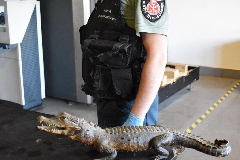Spreparowany okaz chronionego gada został wykryty w bagażniku osobowego peugeota. Jest to krokodyl krótkopyski ( Osteolaemus tetrapsis), występujący głównie w Afryce zachodniej i zachodnio- centralnej, chroniony na mocy Konwencji Waszyngtońskiej CITES. Ochronie, zgodnie z tą konwencją podlegają nie tylko żywe zwierzęta i rośliny, ale także ich części lub wykonane z nich produkty.