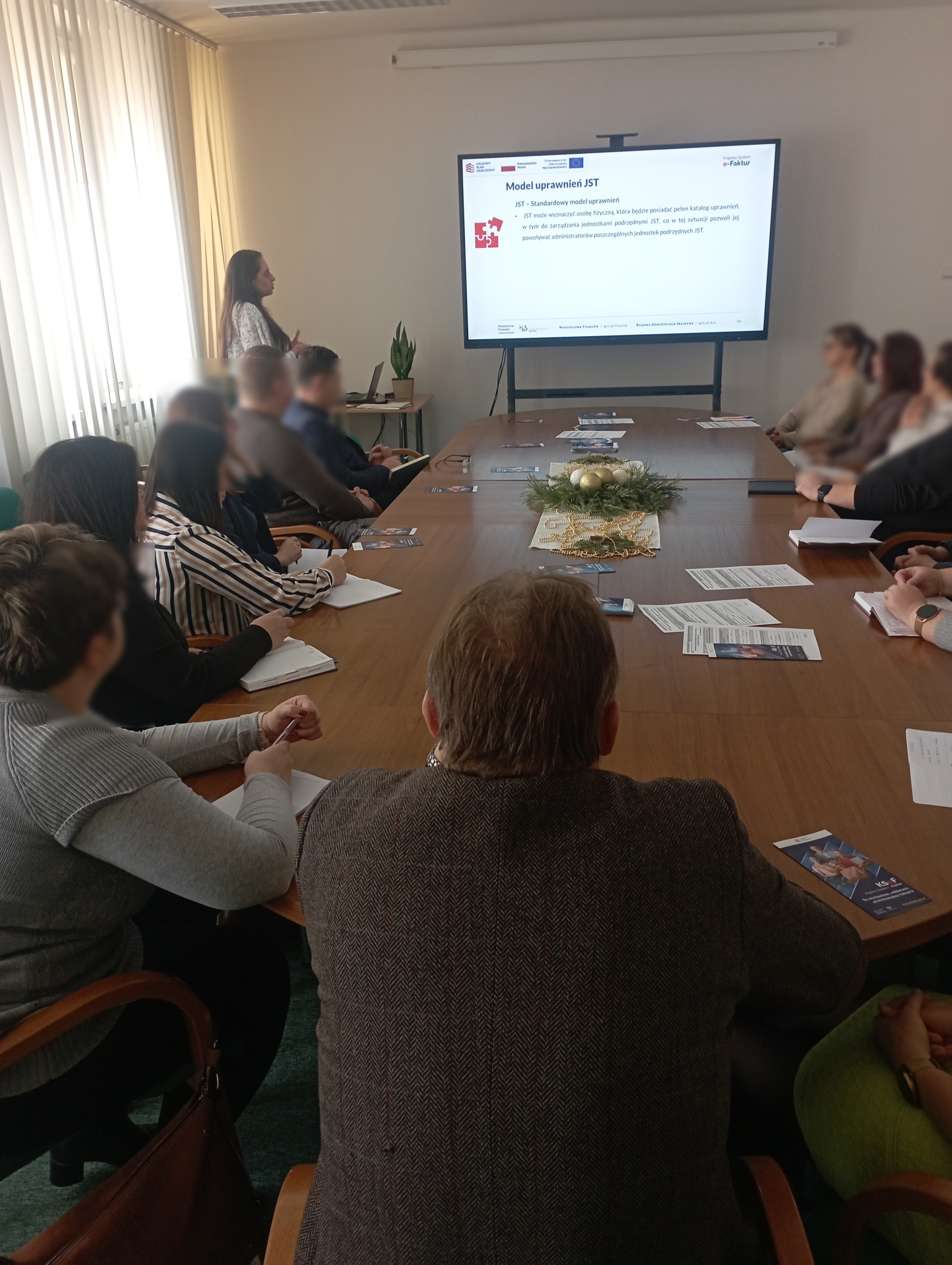 Spotkanie zainaugurowała Naczelnik Urzędu Skarbowego w Jarosławiu Pani Dorota Grabowska. Następnie uczestnicy szkolenia poznali podstawowe założenia i zasady działania oraz wzięli udział w zajęciach praktycznych, tj. w wystawianiu faktur KSeF w wersji szkoleniowej programu. Przedstawicielami jednostek samorządu terytorialnego otrzymali także pakiety materiałów i broszur informacyjnych.