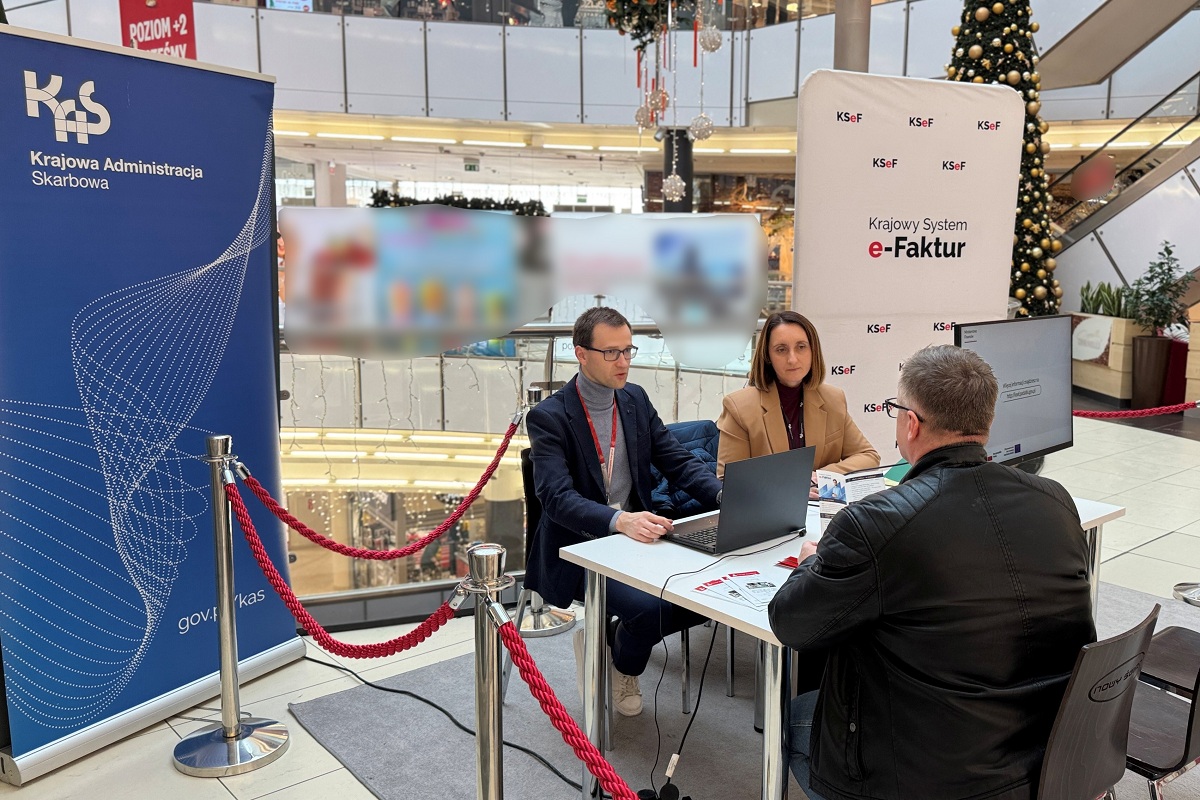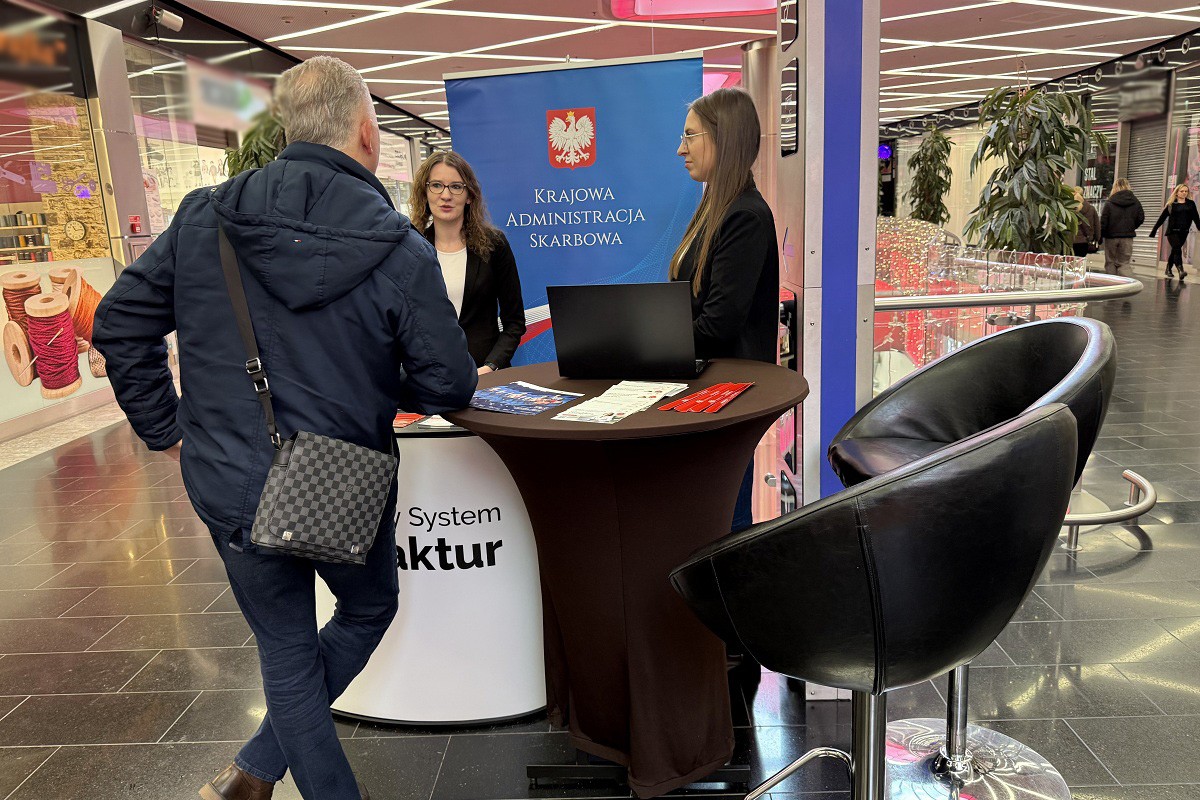 Pracownicy urzędów skarbowych z podkarpackiej KAS informowali o Krajowym Systemie e-Faktur (KSeF) w punktach zorganizowanych w galeriach handlowych w Rzeszowie i Krośnie.