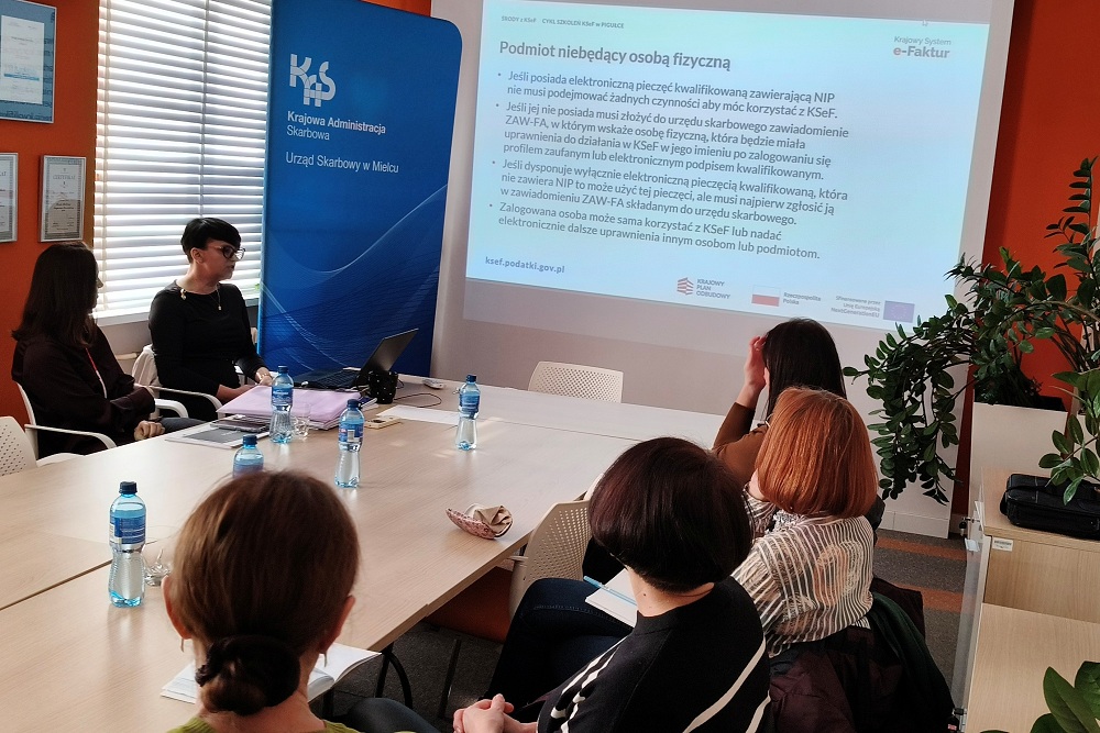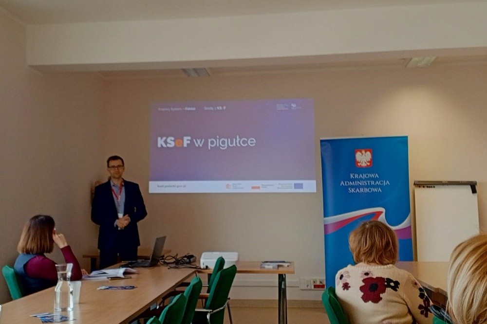 Podczas szkoleń eksperci podkarpackiej KAS omówili założenia KSeF, a także sposoby logowania się do systemu, zasady nadawania oraz zarządzania uprawnieniami.